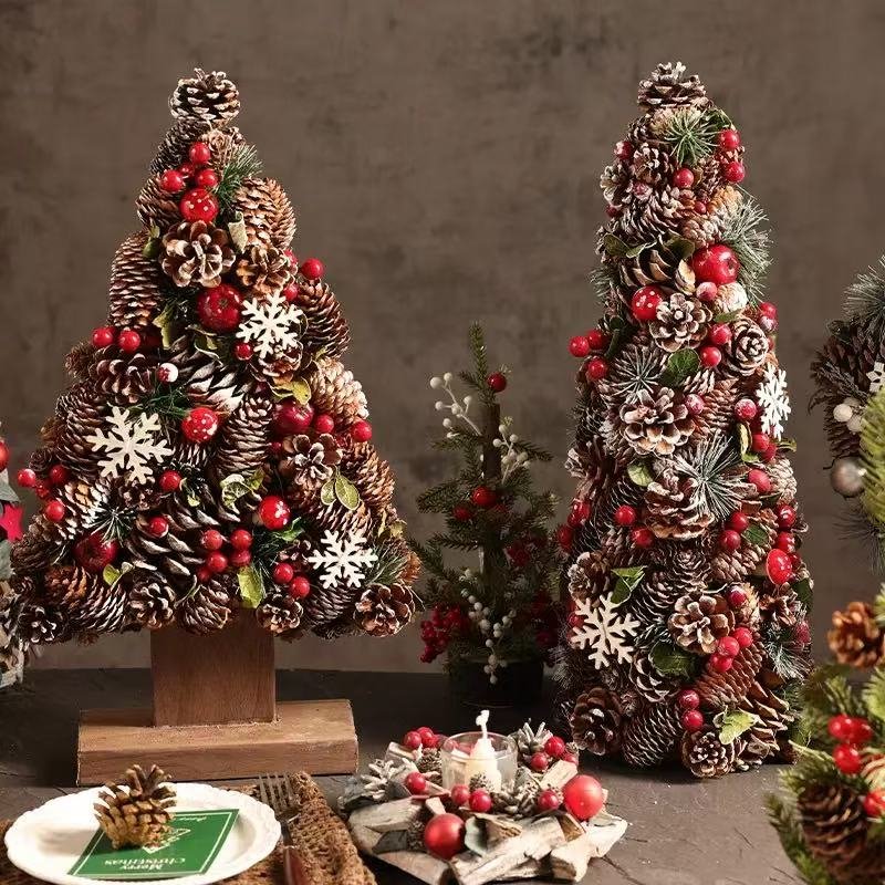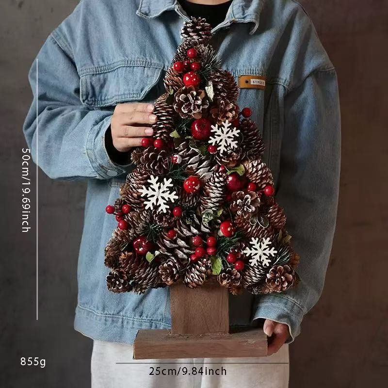 • Natural Pine Cone Body: The Christmas tree structure is meticulously built from a large volume of natural pine cones, showcasing a rich, multi-layered texture.